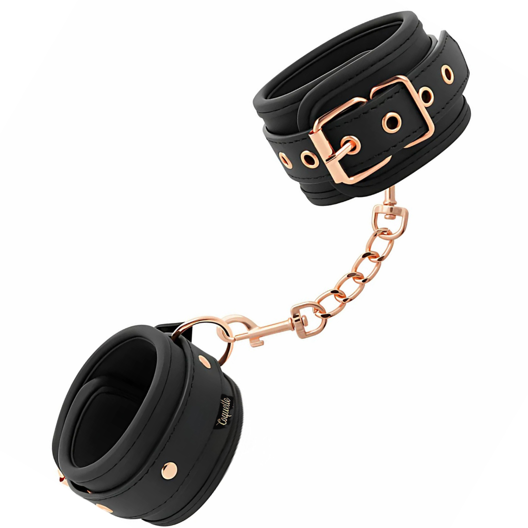 ❤ A Coquette Chic Fantasy apresenta algemas em pele vegan com metal sem níquel (antialérgico)! Prenda o seu amante com estas algemas sensuais, eficazes e confortáveis. Um acessório clássico para os seus momentos de bondage. Estas algemas têm a estética elegante que procura, ao mesmo tempo que são absolutamente eficazes. Com dupla camada e acabamento com fivela metálica, o seu submisso não conseguirá escapar. O interior almofadado garante o seu conforto, independentemente do esforço ou do tempo de brincadeira. A união em vez de ser as clássicas correntes de metal é um acessório para puxar ou segurar o seu amante.